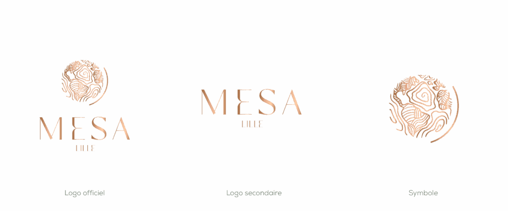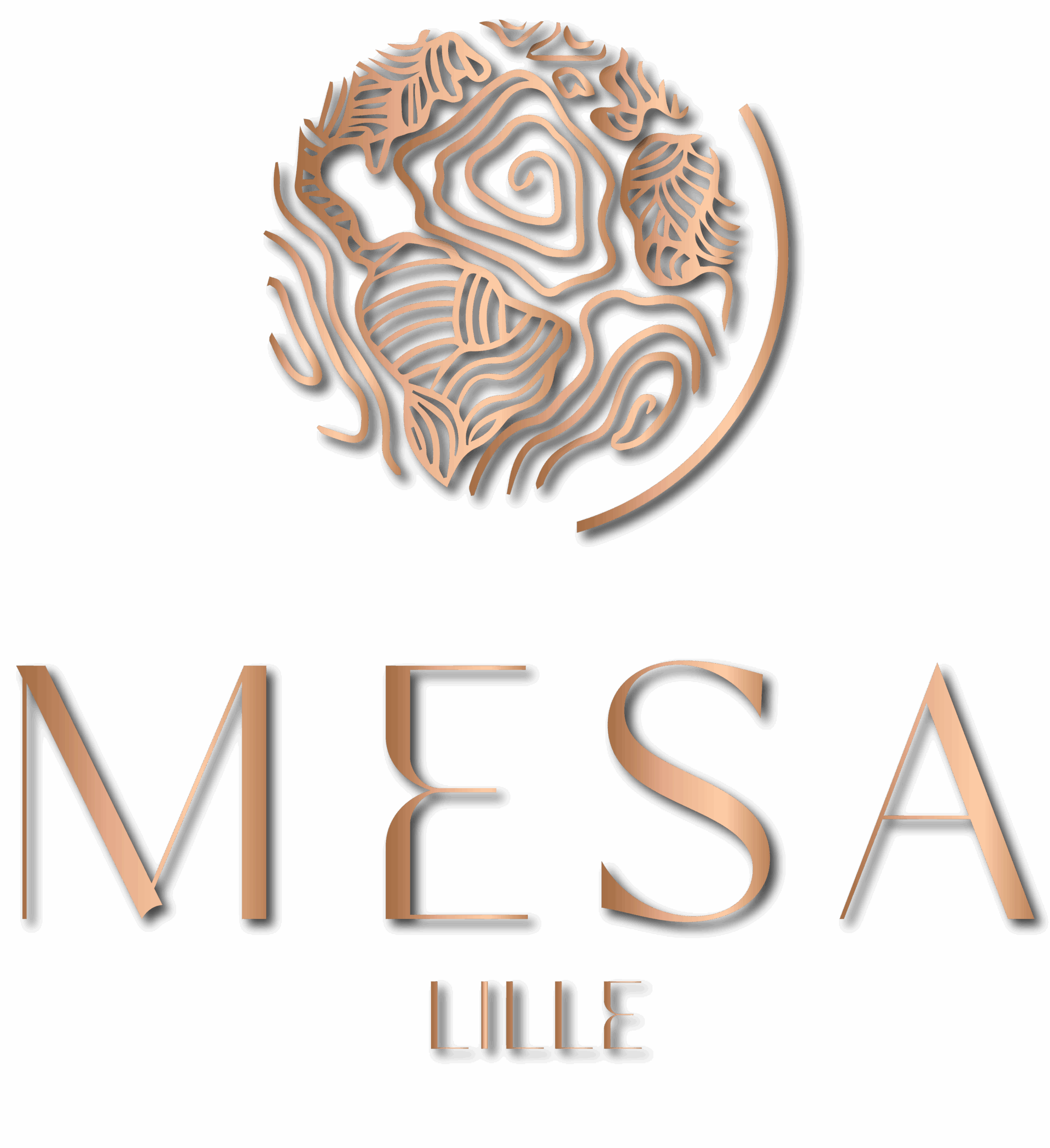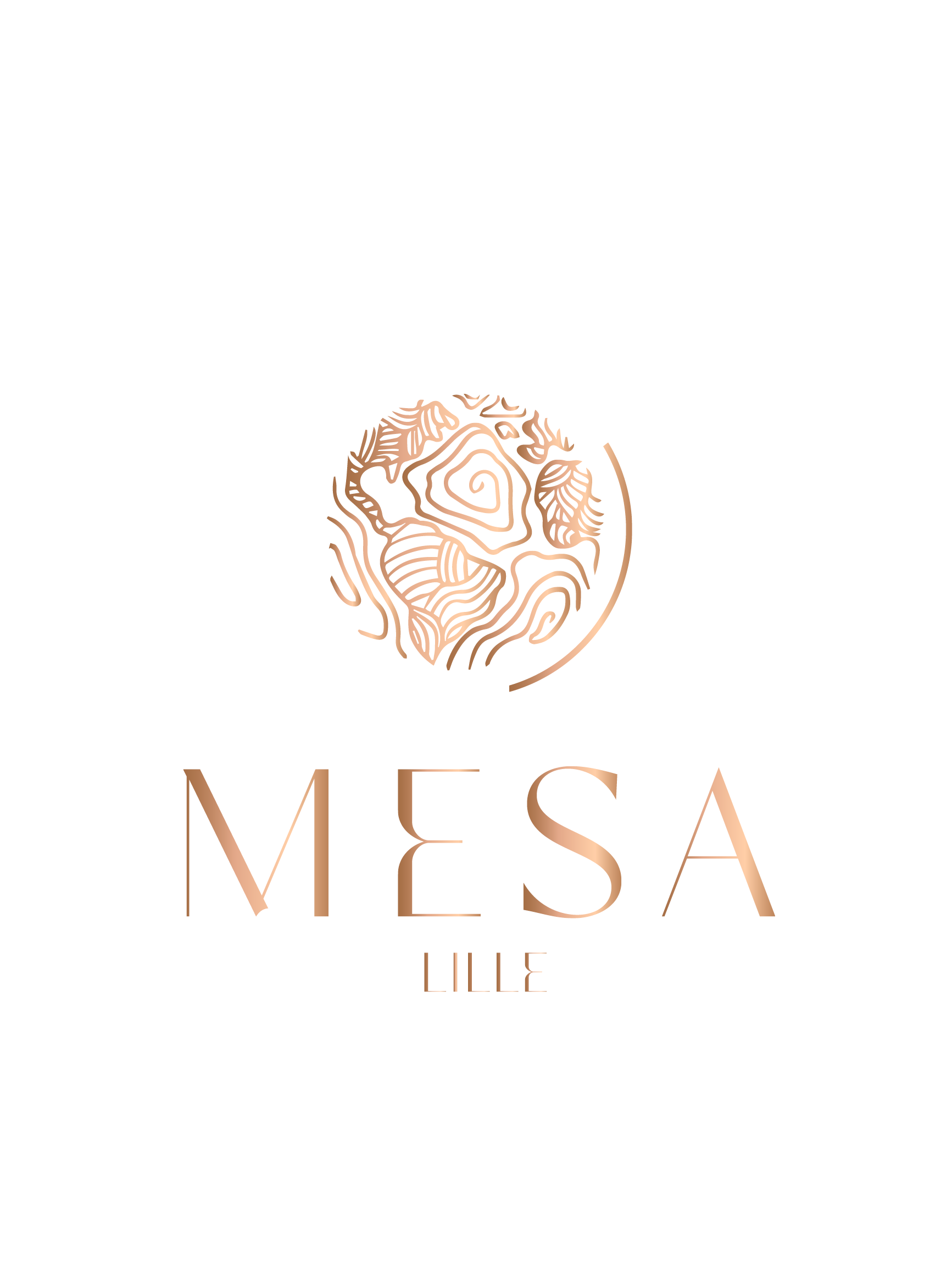 Le logo de MESA représente un globe stylisé, symbole de la diversité des cultures culinaires que le restaurant célèbre. Les formes topographiques évoquent les différents pays à travers des lignes organiques, soulignant l’idée de voyage et de fluidité. La teinte bronze exprime l’exigence, la qualité et le positionnement haut de gamme du lieu. Enfin, la mention «Lille» ancre le projet dans son territoire, tout en conservant une dimension internationale.