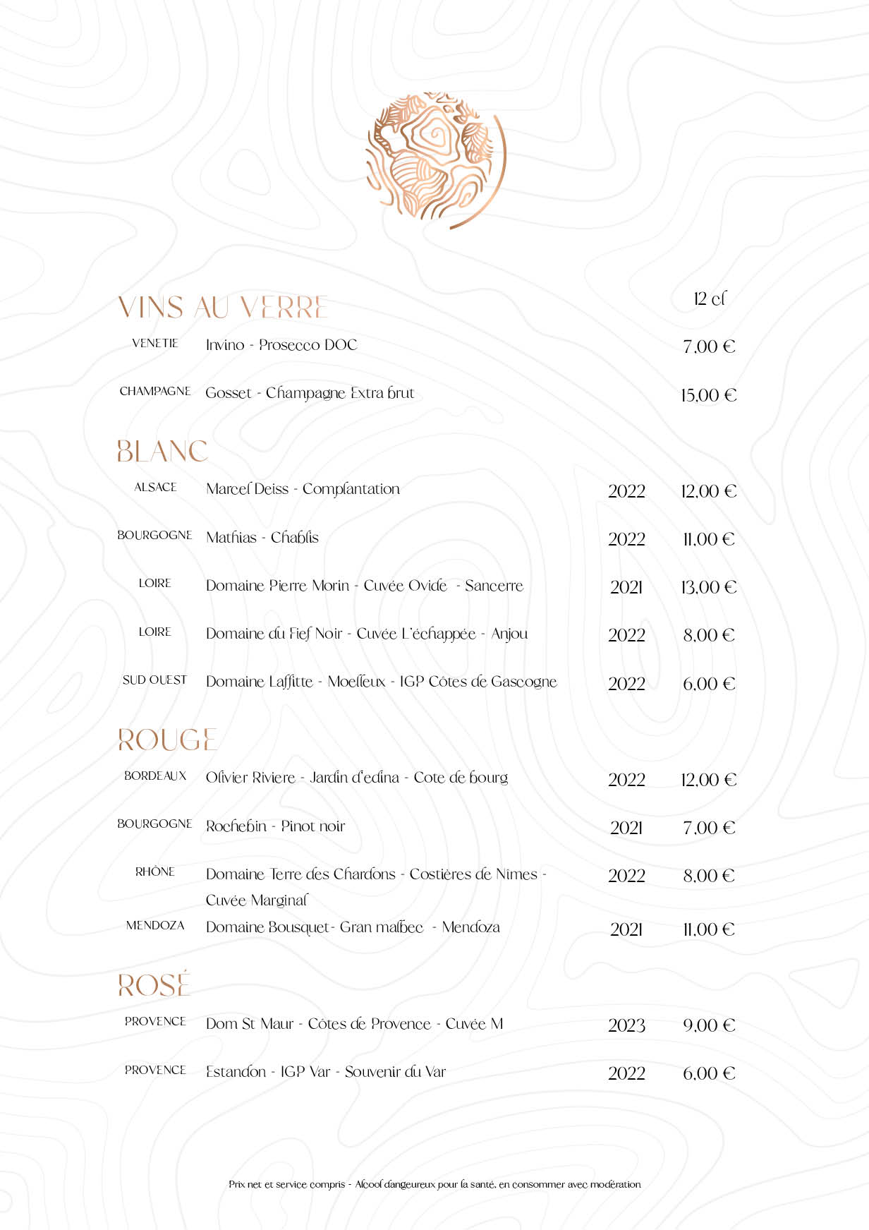 Inspirée par les topographies du monde, la carte des vins de MESA est pensée comme une exploration sensorielle. Chaque cuvée est sélectionnée avec soin auprès de vignerons d’exception. Des classiques français aux pépites étrangères, elle épouse les contours du monde… et de vos envies.