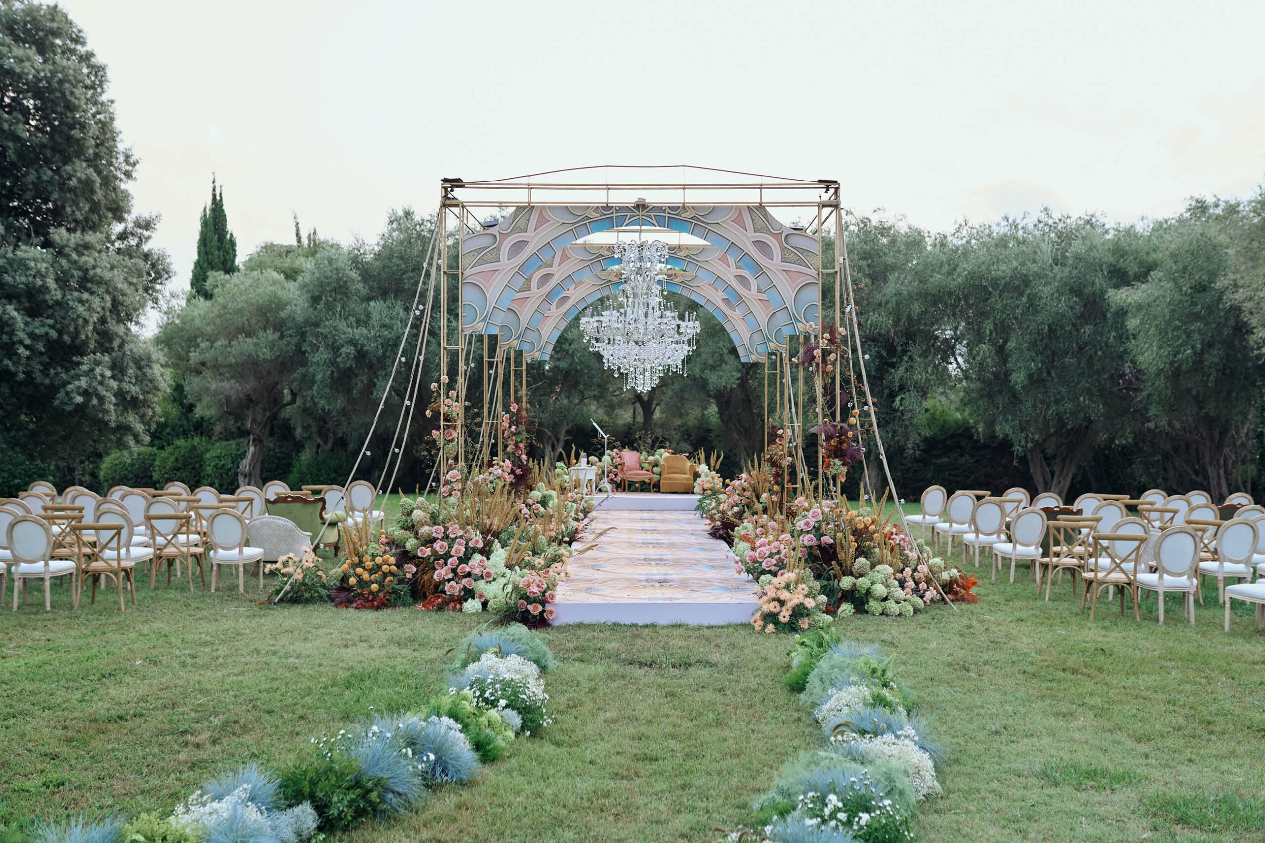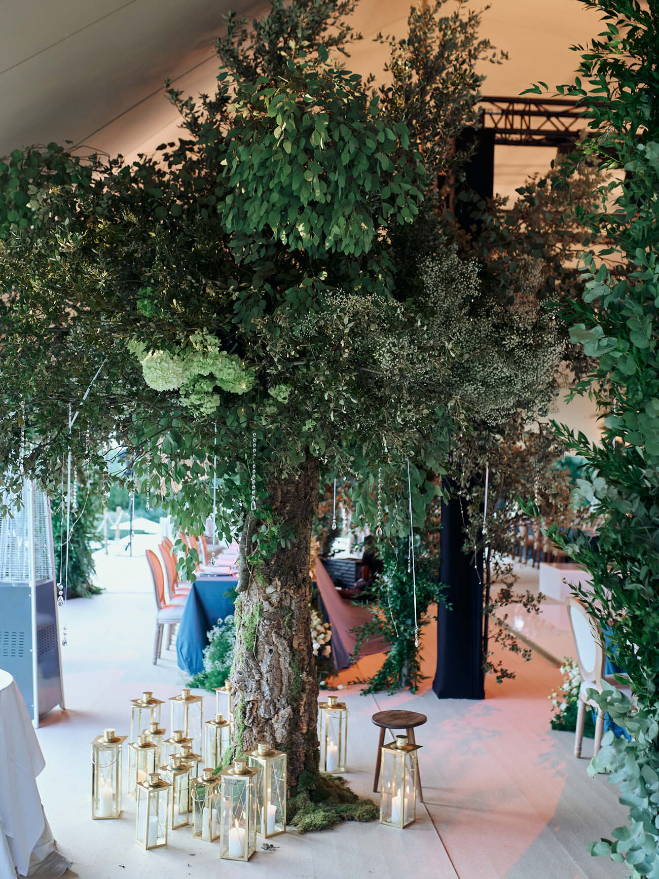 Sous les branches d’un majestueux arbre décoré, les invités étaient invités à accrocher une clé symbolique accompagnée de leur vœu, pour offrir aux mariées un jardin suspendu de messages précieux.