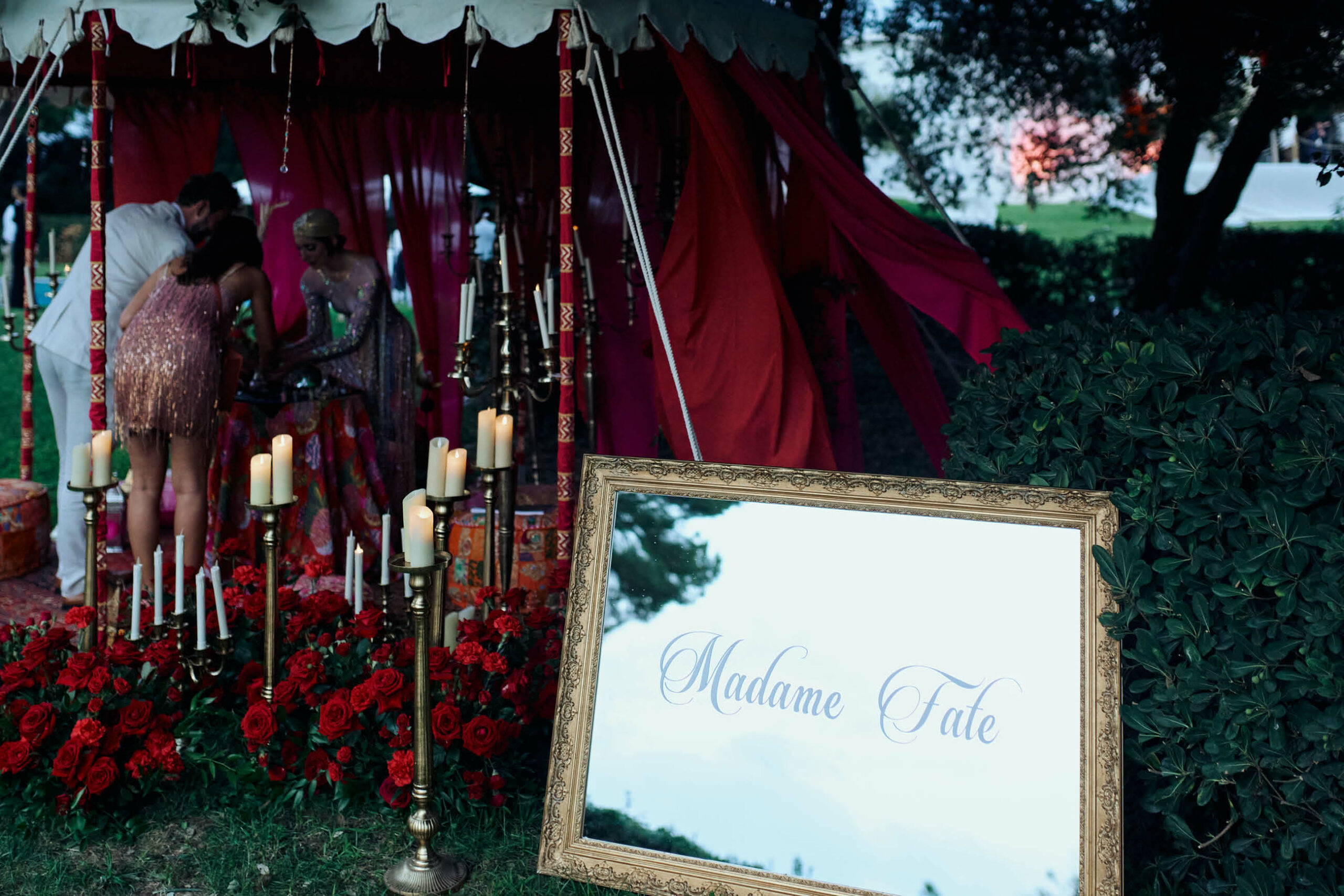 Chaque zone de réception — de la salle de bal au salon de thé, du club de gentlemen au cabaret — a été scénographiée autour d’un storytelling sur mesure, conçu pour être partagé avec tous les prestataires, afin de garantir une expérience homogène, élégante et mémorable.