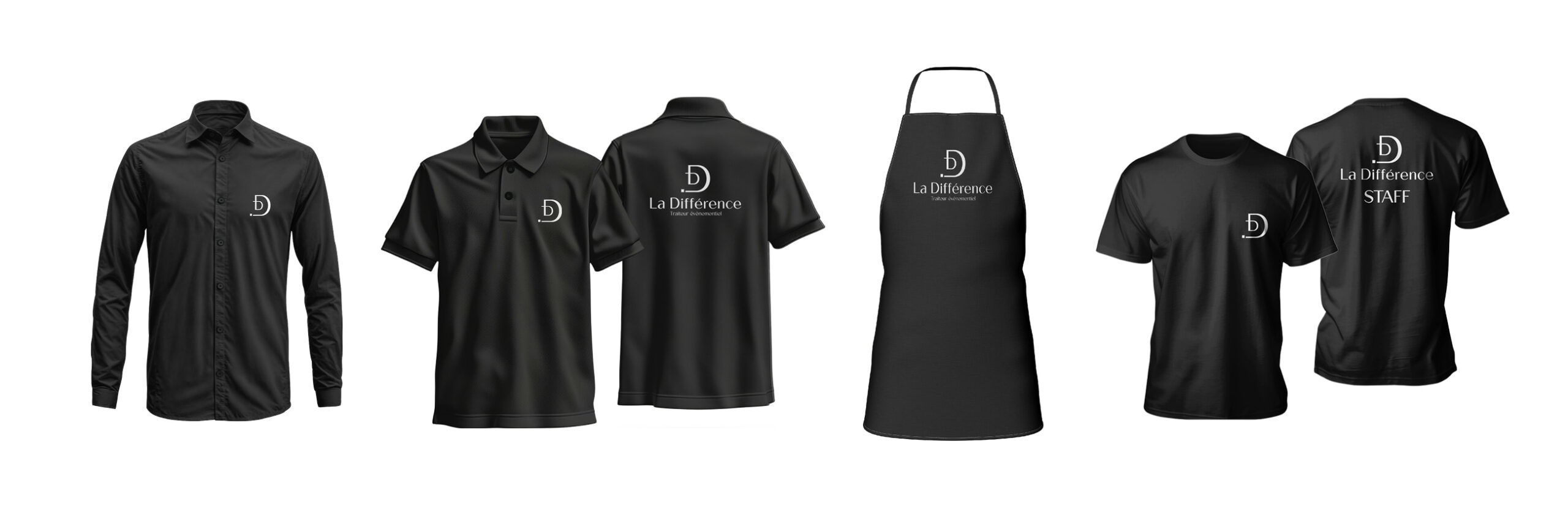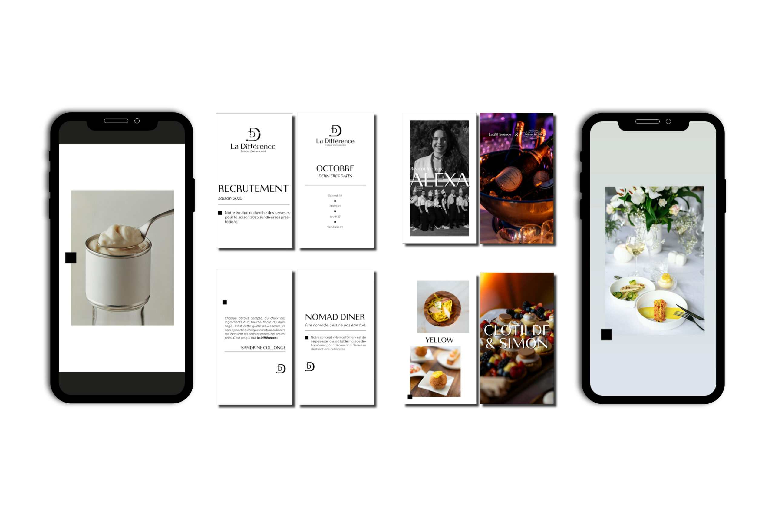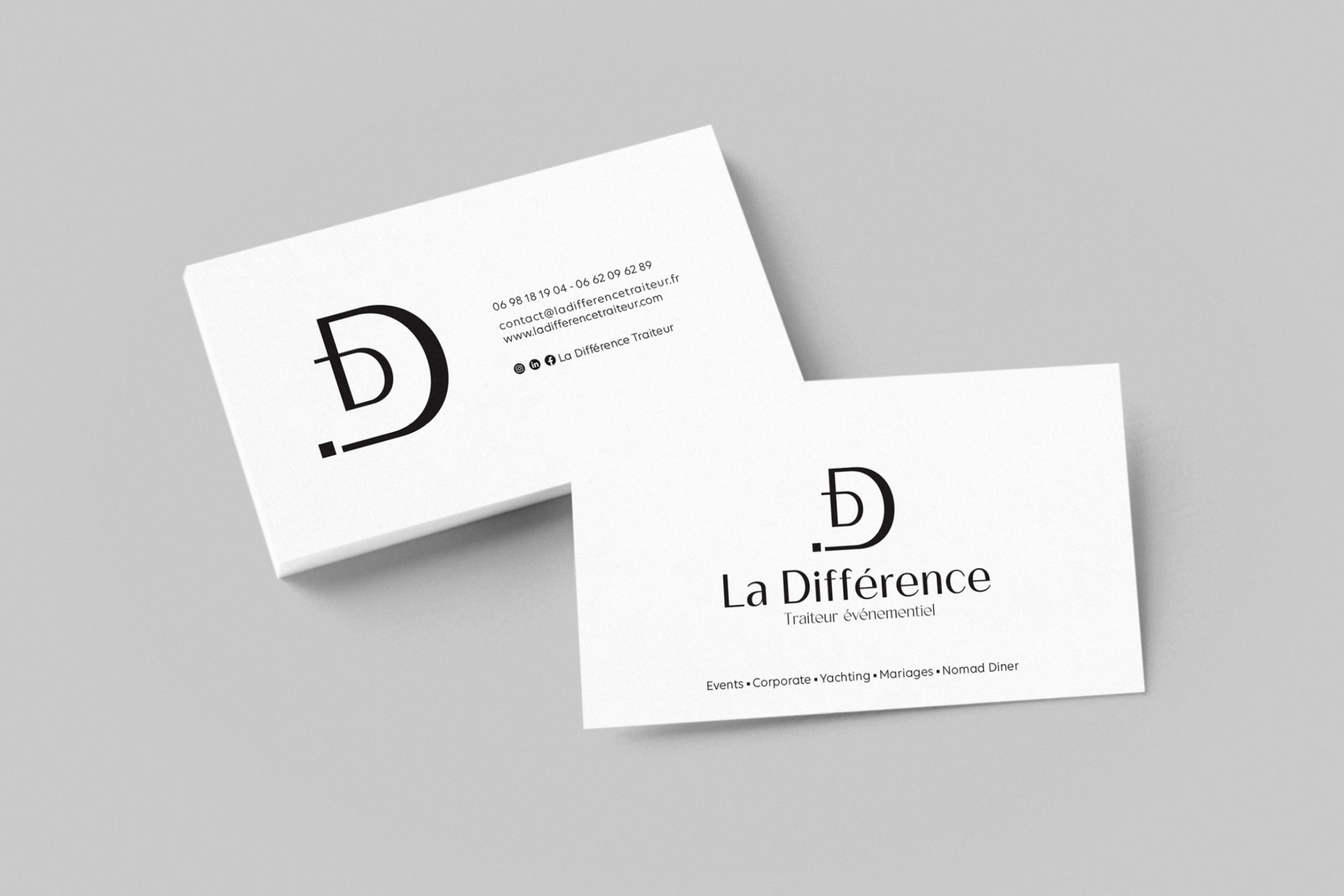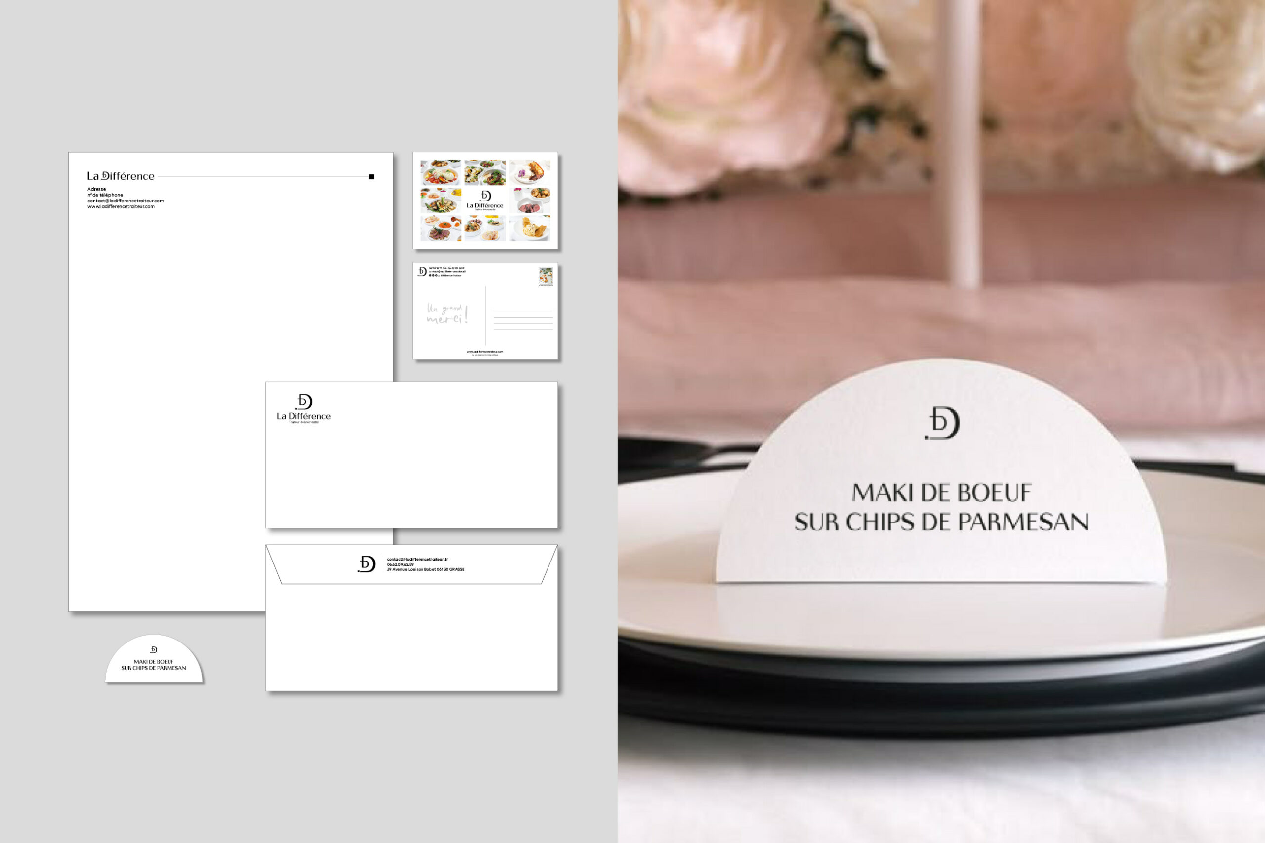 Le logo de La Différence s’appuie sur la courbe du nombre d’or pour créer un symbole intemporel et harmonieux, reflet d’un positionnement haut de gamme. Sa forme minimaliste, associée à une typographie linéale épurée, évoque modernité, rigueur et sophistication. Le contraste entre le nom et la baseline assure une hiérarchie visuelle élégante et lisible. Pensé comme un équilibre entre art et précision, ce logo incarne une gastronomie d’exception, où chaque détail est synonyme de maîtrise et de raffinement.